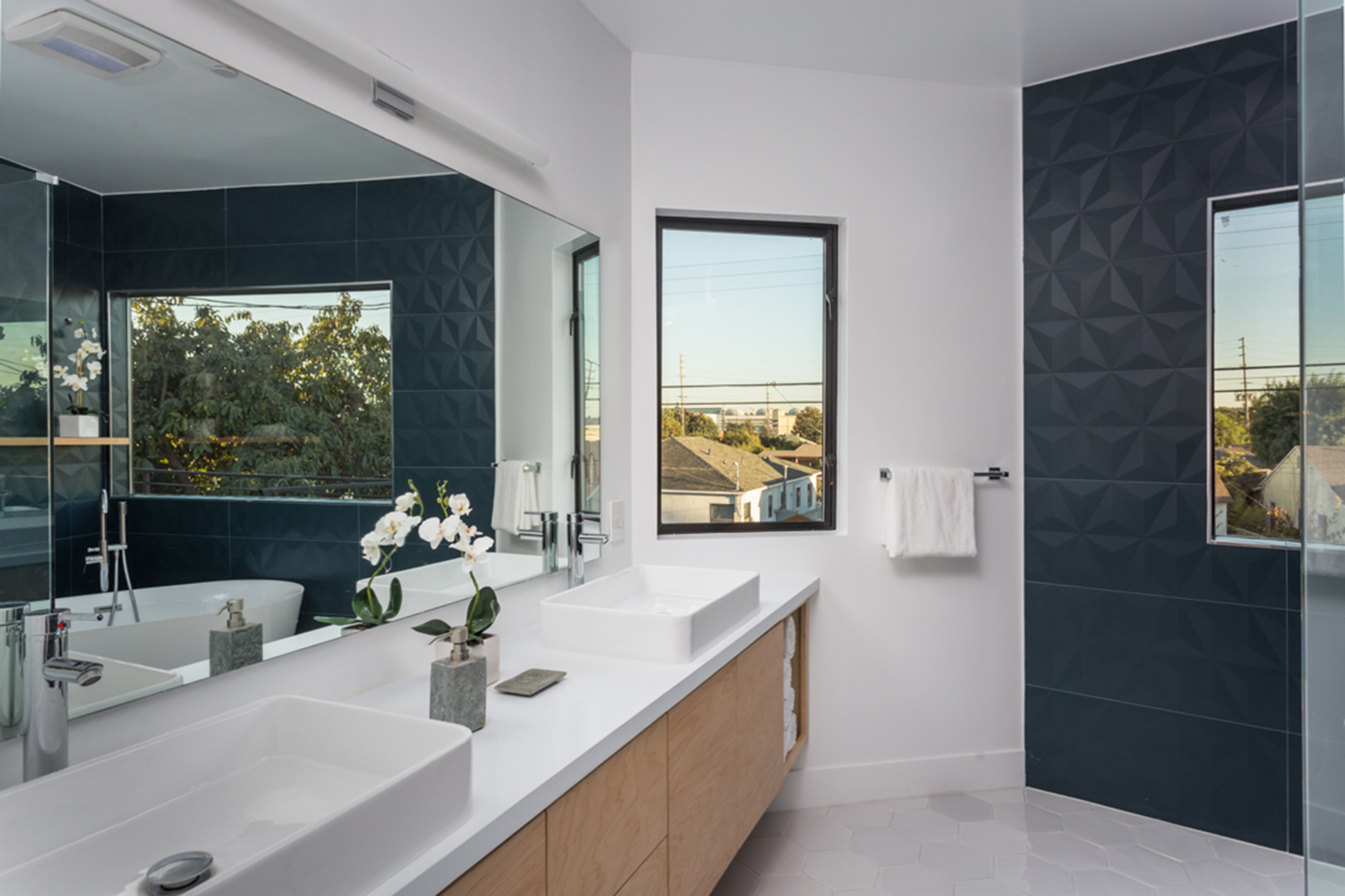 Our 4D Collection brings you large and small format wall tiles in contemporary solid shades of deepest teal blue and freshest white dimensional tiles. Designed with modern living in mind, the clean designs feature on-trend reliefs in chevron, diamond, hex, and lines as well as flat fields. Practical for home or commercial use and brimming with cool-factor, these wall tiles are both cost-effective and design-savvy and are ideal for bathrooms, backsplashes or fashion-forward commercial applications.